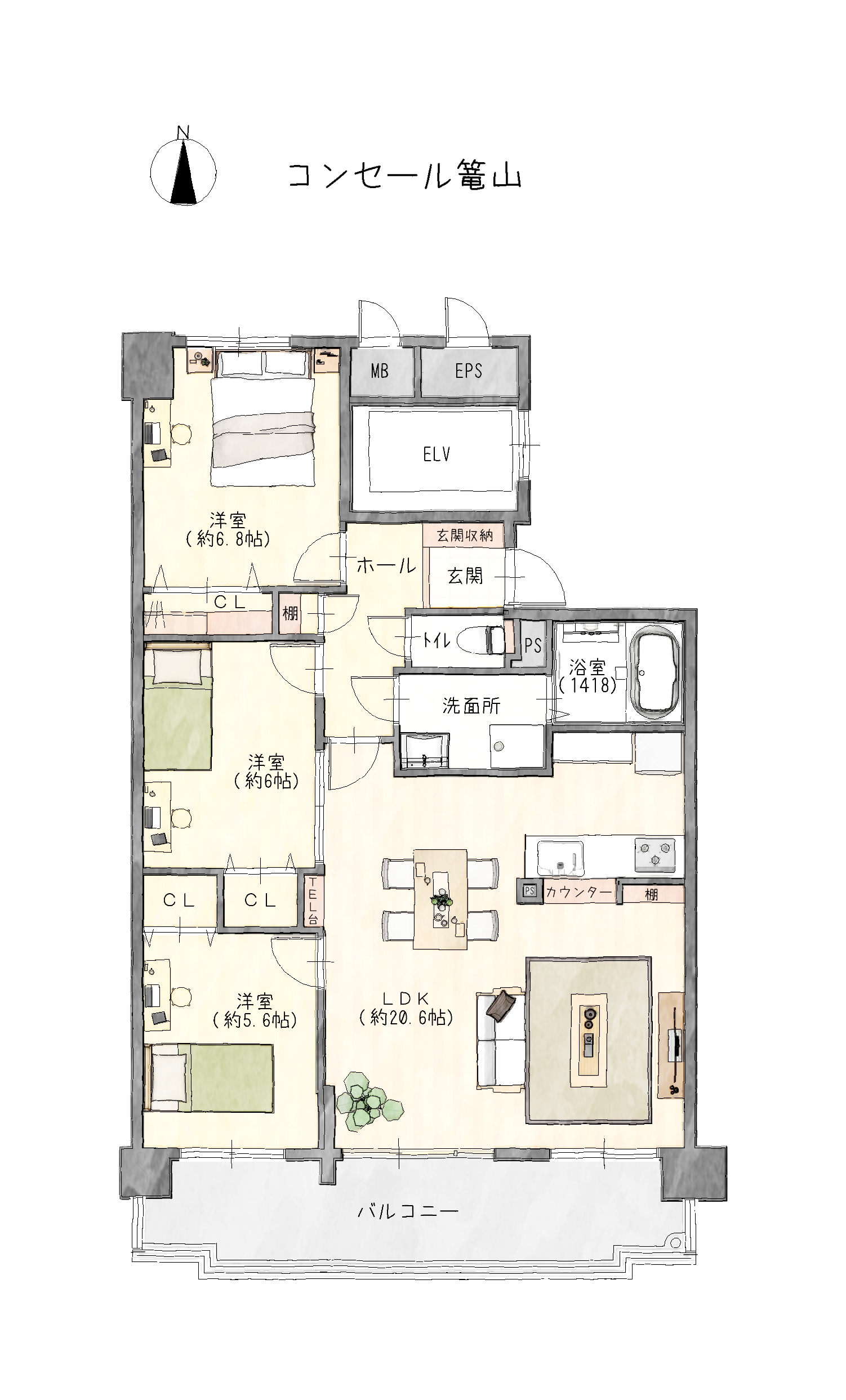 20畳超えの広々リビング♪エレベーター停止階♪駐車場1台確保済み♪住宅ローン減税対象♪1418の広々ユニットバス♪人気の対面カウンターキッチン♪全居室エアコン設置可能!