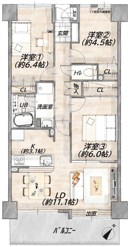 専有面積68.50㎡の3LDK!閑静な住宅街ながらも、スーパーやコンビニも近く、毎日の暮らしに便利な立地が魅力です。