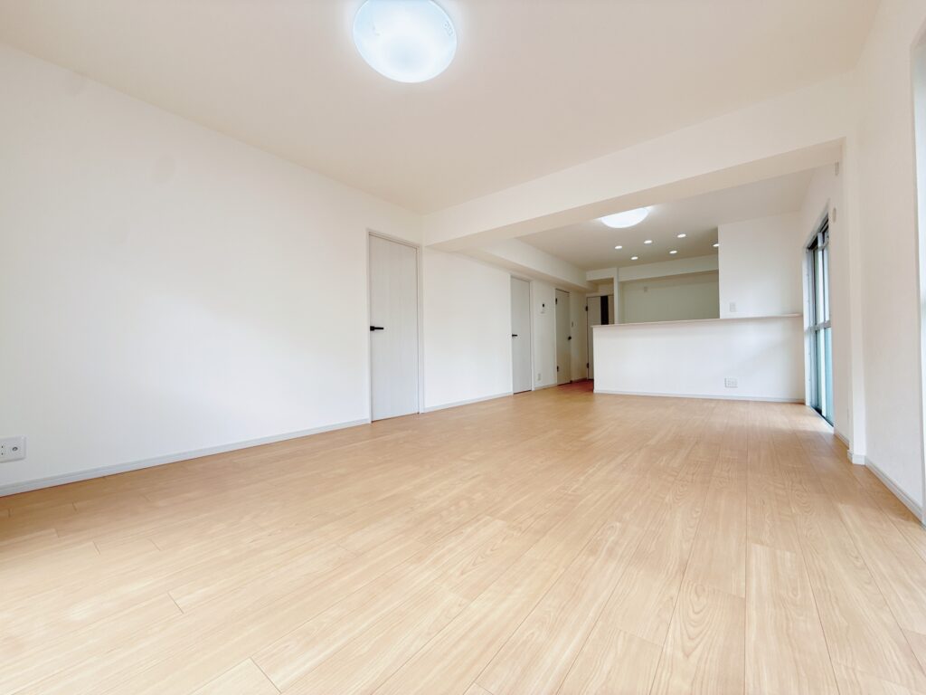 約20帖あるLDKは3箇所窓があるので、日当たり・風通良好♪長方形なので家具の配置もしやすいです♪